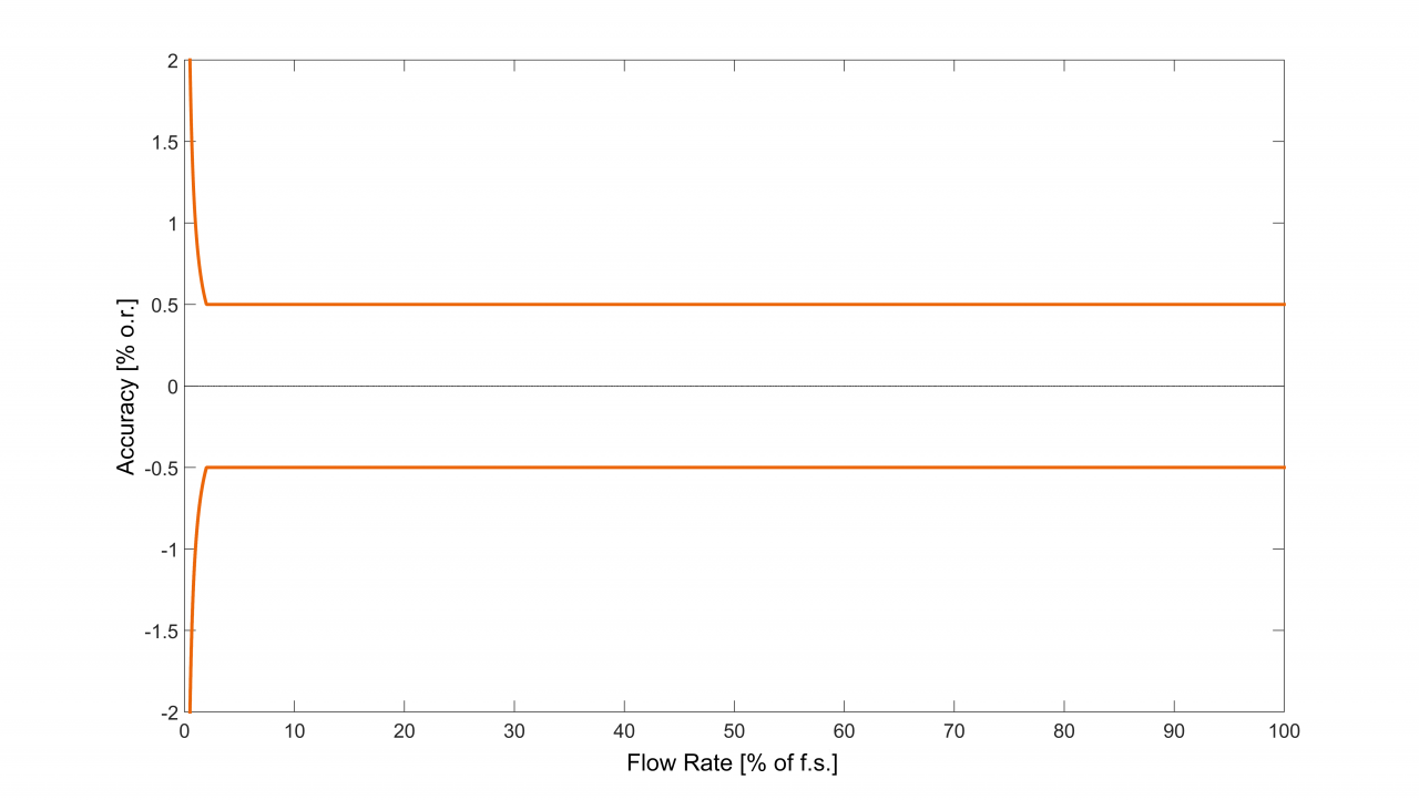 基本精度(質量流量)²  流量范圍的±0.1 % (可選: *高到 ±0.5 %)